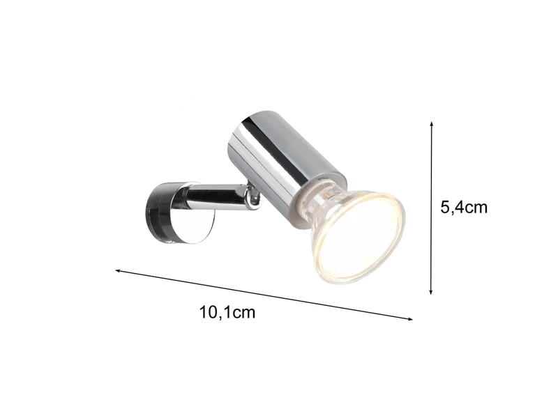 Die dezente Farbgestaltung in Chrom ermöglicht die Kombination mit bereits vorhandenem Mobiliar. Mit einer Breite von 3,3 cm und einer Ausladung von 10,1 cm ist sie auch für kleinere Bäder gut geeignet und überzeugt durch ihr effektives Licht.