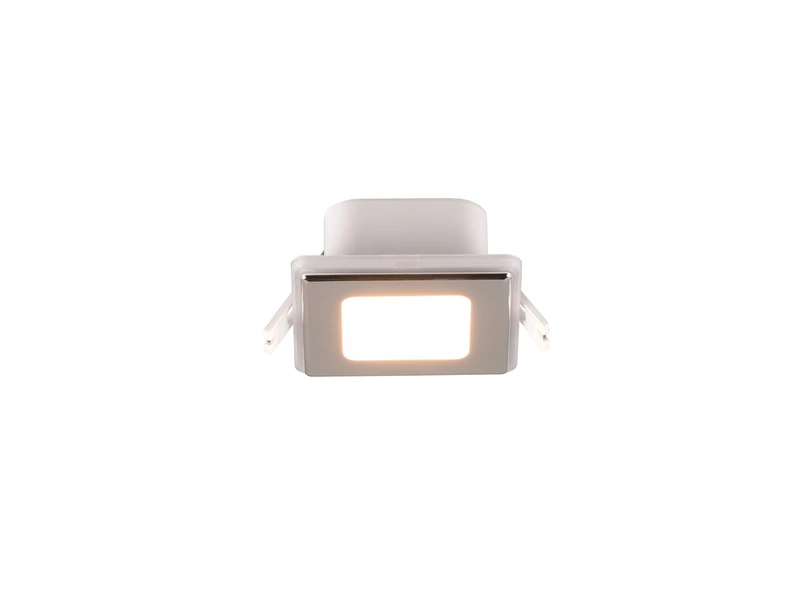 Dieser eckige LED Einbaustrahler in Chromfarben ist mit einer Schutzart von IP44 Staub- und Spritzwasser geschützt. Somit ist er nicht nur für die Beleuchtung von Innenräumen vielfältig verwendbar, sondern kann bei korrektem Einbau auch in Feuchträumen und im Außenbereich eingesetzt werden.