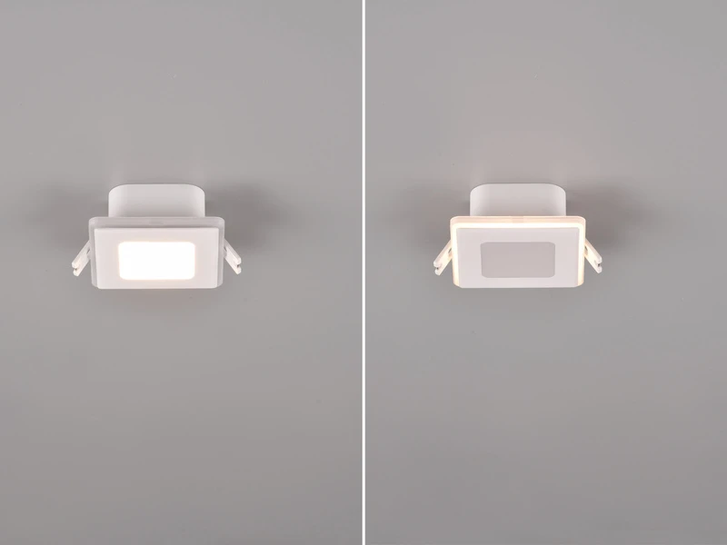 Dieser eckige LED Einbaustrahler in Weiß matt ist mit einer Schutzart von IP44 Staub- und Spritzwasser geschützt. Somit ist er nicht nur für die Beleuchtung von Innenräumen vielfältig verwendbar, sondern kann bei korrektem Einbau auch in Feuchträumen und im Außenbereich eingesetzt werden.