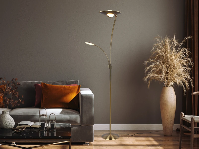 Die Leuchte verfügt zusätzlich über einen verstellbaren Lesearm, der sich getrennt von der Hauptlichtquelle schalten lässt und für die passende Beleuchtung beim Lesen oder Handarbeiten sorgt. Die eingebaute Memory-Funktion speichert die zuletzt gewählte Licht-Einstellung und verwendet diese beim erneuten Einschalten.