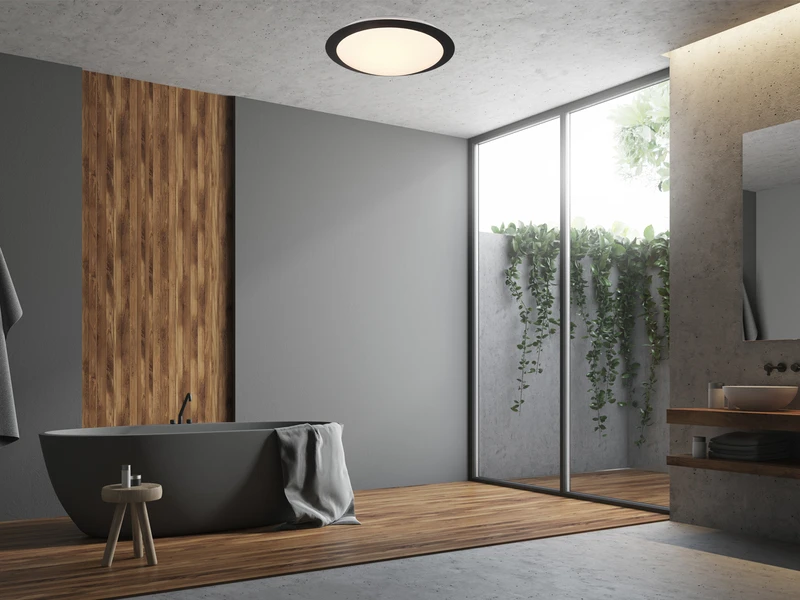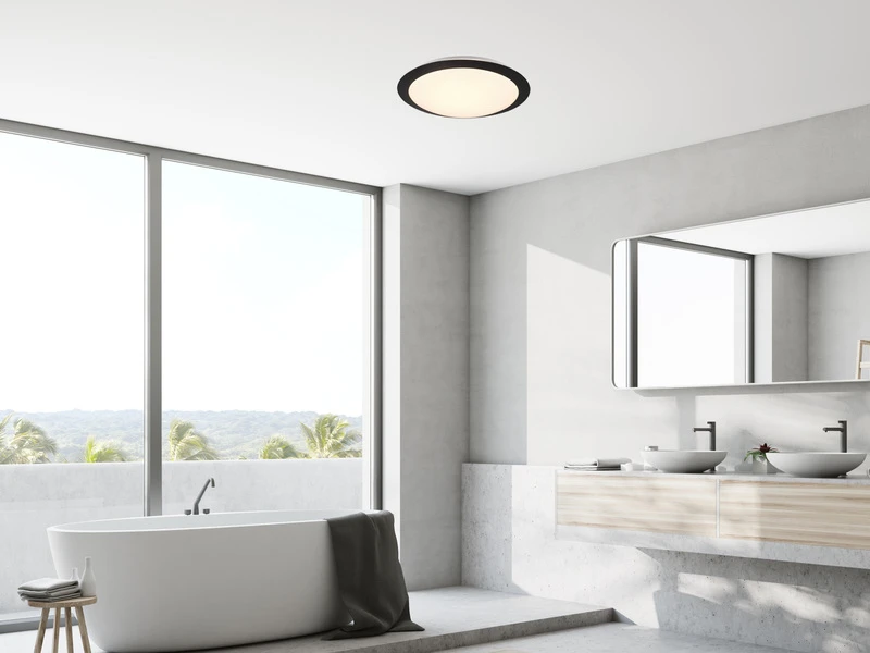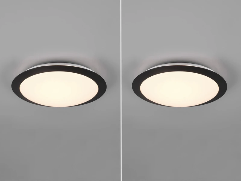 Dank Schutzart IP44 ist die Lampe gegen Spritzwasser geschützt und damit perfekt für alle Feuchträume, wie Badezimmer und Gäste WC geeignet. Die edle Optik in Schwarz matt und Weiß, unterstreicht den minimalistischen Einrichtungsstil und sorgt für ein helles, freundliches Ambiente. Dabei haben die Lampen einen Durchmesser von 29 cm sowie eine Höhe von nur 8 cm.
