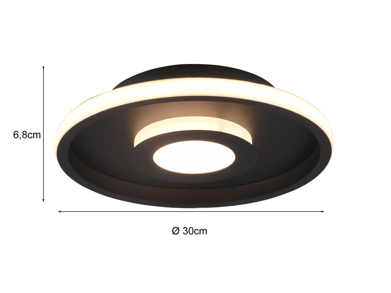 Dank Schutzart IP44 sind die Lampen gegen Spritzwasser geschützt und damit perfekt fürs Badezimmer geeignet. Die edle Optik in Schwarz matt und Weiß, unterstreicht den minimalistischen Einrichtungsstil und sorgt für ein helles, freundliches Ambiente. Dabei hat die Lampe einen Durchmesser von 30 cm sowie eine Höhe von nur 6,8 cm.
