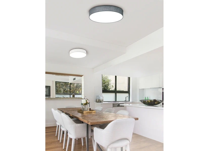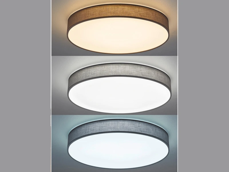 Das zeitlose Erscheinungsbild der Deckenleuchte sorgt im Zusammenspiel mit der unteren, weißen Kunststoffabdeckung für ein angenehmes, warmes Lichtambiente, das Sie nicht blendet. Der weiße Stoffschirm hat einen Durchmesser von 60 cm und ist insgesamt 10 cm hoch. Sie ist ausschließlich zur Deckenmontage geeignet.