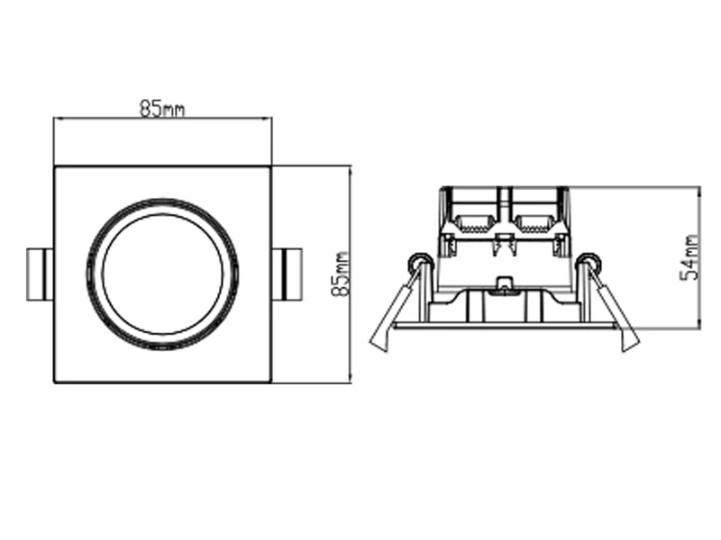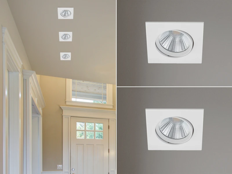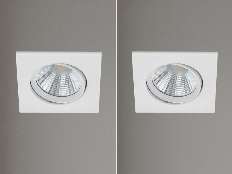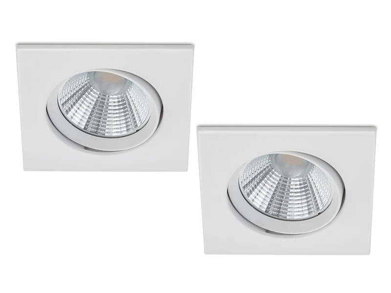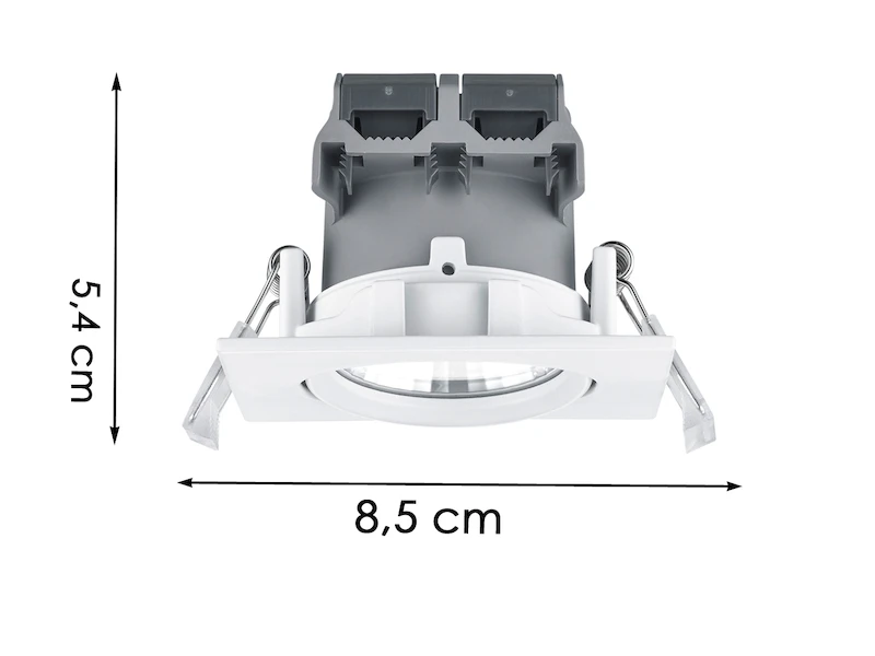 Gefertigt ist jede Deckenlampe aus Weiß mattem Metall. Der eckige Spot hat eine Größe von 8,5 x 8,5 cm sowie eine Einbautiefe von 6,8 cm und lässt sich individuell ausrichten.