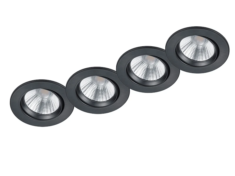 Gefertigt ist jede Deckenlampe aus Schwarz mattem Metall. Der Spot hat einen Durchmesser von 8,5 cm sowie eine Einbautiefe von 6,8 cm und lässt sich individuell ausrichten.