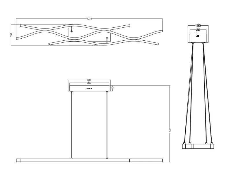 Die 107cm breite, 150cm hohe und 15cm tiefe Hängeleuchte kann in der Lichtstärke und Lichtfarbe variiert und somit flexibel im Wohnzimmer, Schlafzimmer, als Flurlicht oder Büroleuchte verwendet werden.