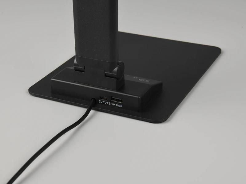 Auf der Rückseite des Leuchtenfuß ist die Schreibtischlampe mit einem praktischen USB,- und einem USB-C Anschluss mit Ladefunktion ausgestattet.
