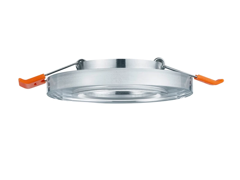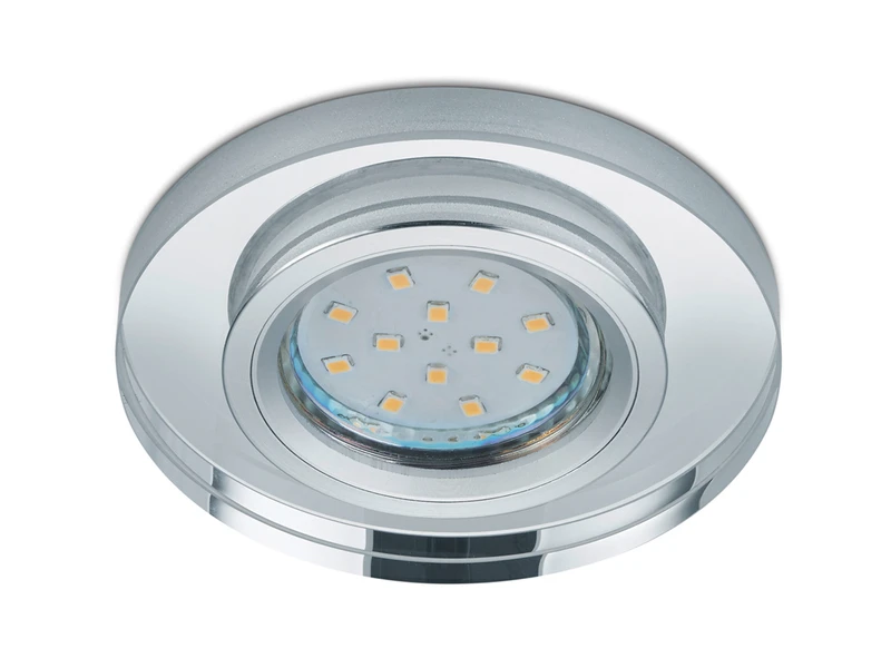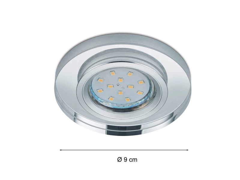 Der Einbauspot aus Metall und Glas hat einen Durchmesser von 9 cm und erfordert einen Deckenausschnitt von 6,5 cm sowie eine Einbautiefe von min. 10 cm.