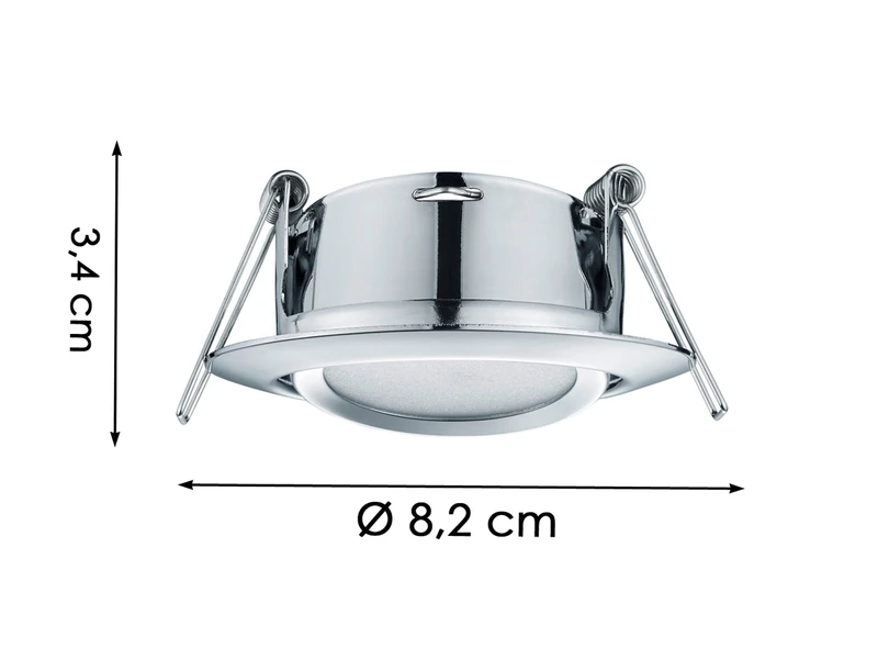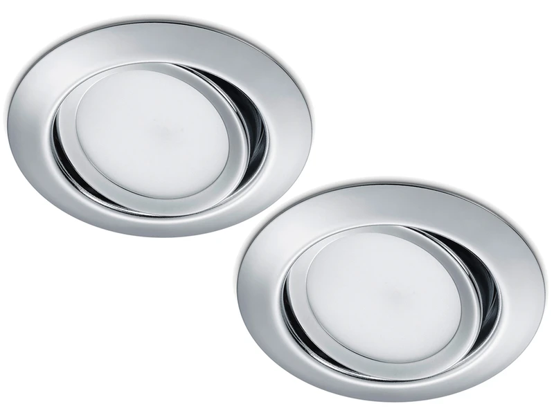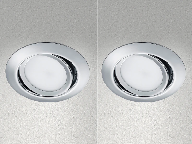 Gefertigt sind die Deckenlampen aus Chrom glänzenden Metall. Der Spot hat einen Durchmesser von 8,2 cm sowie eine Einbautiefe von 5 cm und lässt sich individuell ausrichten.