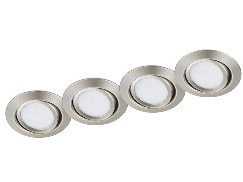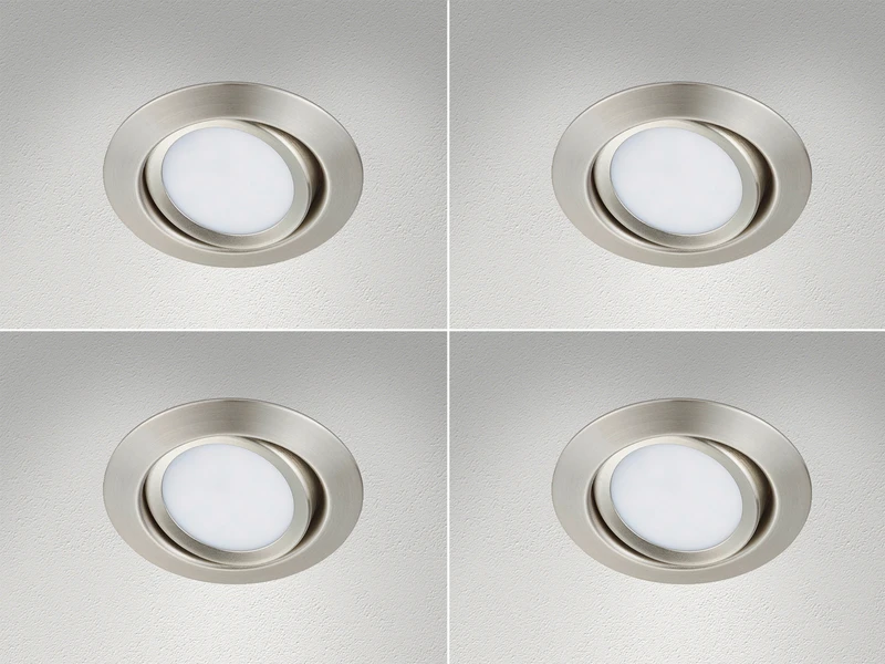 Gefertigt sind die Deckenlampen aus Nickel mattem Metall. Der Spot hat einen Durchmesser von 8,2 cm sowie eine Einbautiefe von 5 cm und lässt sich individuell ausrichten.