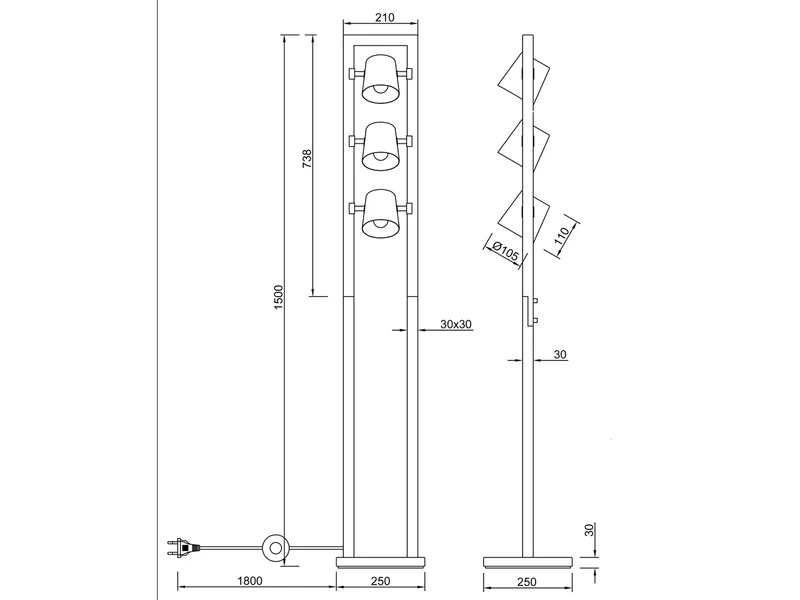 Die Vintage Leuchte hat eine Höhe von 150 cm ist 25 x 25 cm breit & tief. Über den Fußschalter wird die große Standleuchte bequem ein-aus geschaltet. Die Leuchte eignet sich für drei Leuchtmittel mit einer E14-Fassung bis maximal je 25 Watt, welche nicht im Lieferumfang enthalten sind.