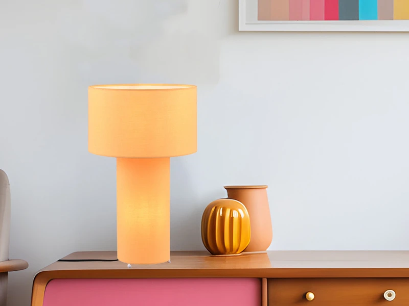 Das sanfte Up and Down Licht aus dem zylinderförmigen Lampenschirm (Ø 24cm) und dem Korpus (Ø 12cm) erweckt die ausgeschaltet eher unauffällige Leuchte zum Leben und schafft eine angenehme Wohnatmosphäre.