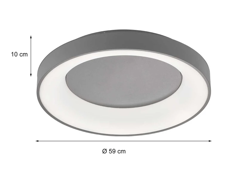 Der Durchmesser von 59 cm macht die Deckenleuchte zu einem absoluten Blickfang. Ob als zentrales Element im Wohnzimmer, Schlafzimmer und Küche oder effektvoll im Treppenhaus und Eingangsbereich.