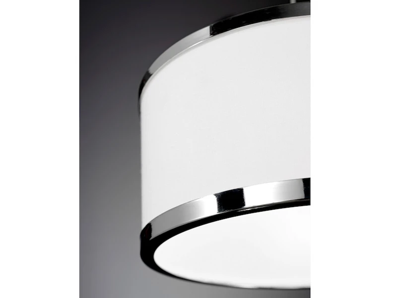 Mit dem Materialmix aus chromfarbenem Metall und weißem Stoff fügt sich die Hängelampe in nahezu jeden Einrichtungsstil ein. Sie überzeugt durch schlichte Eleganz und sorgt für eine effiziente Beleuchtung über dem Esstisch in Esszimmer und Küche oder auch im Wohnzimmer über dem Couchtisch.