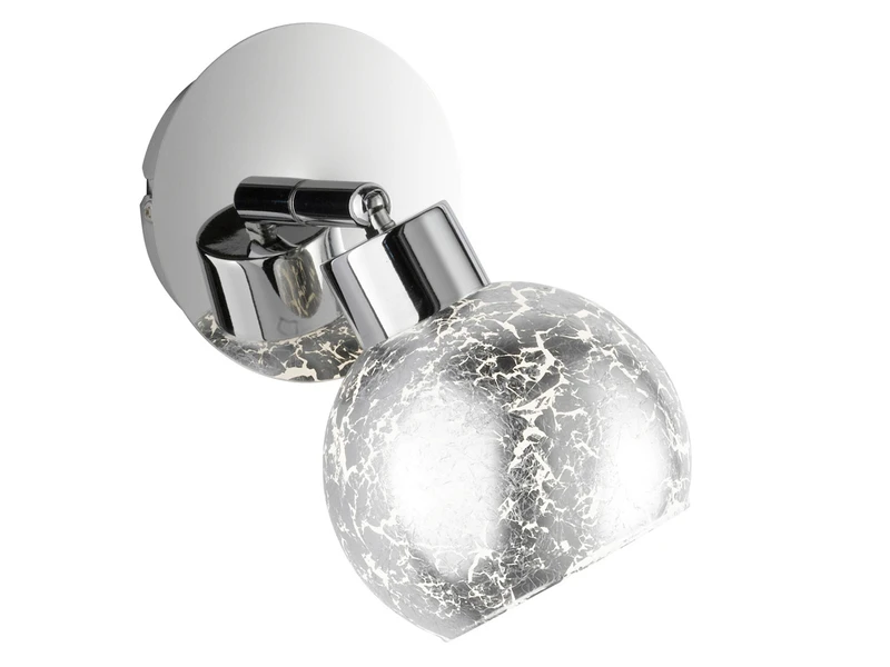 Besonders im eingeschalteten Zustand entfaltet die Wandleuchte ihre gesamte Schönheit, indem der Glasschirm für interessante Lichtspiele und eine zauberhafte Lichtstimmung sorgt. Durch ein eingebautes Gelenk lässt sich der Spot in verschiedene Winkeln ausrichten und drehen. So haben Sie ein auf Ihre persönlichen Wünsche abgestimmtes Wandlicht.