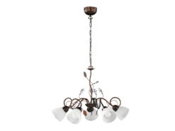 MeineWunschleuchte Kronleuchter Landhaus 3-flammig Mit LED Dimmbar, Rostoptik & Lampenschirme Glas