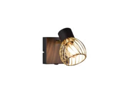 Reality Leuchten Wandstrahler PUNCH Metall Schwarz Gold Mit Drahtgeflecht, Höhe 14cm
